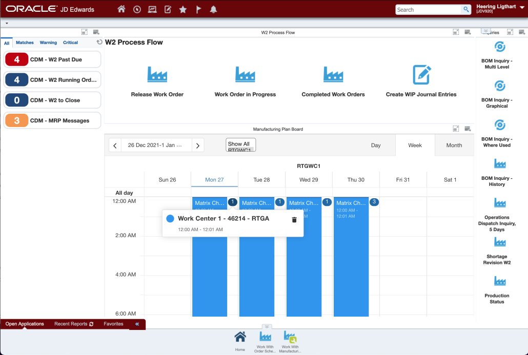 Oracle JD Edwards EnterpriseOne is een zeer modern en compleet ERP systeem dat speciaal voor productiebedrijven en groothandels is ontwikkeld. Wereldwijd gebruiken ruim 6.000 bedrijven in uw branche deze krachtige ERP oplossing. Doordat JD Edwards al sinds 1977 bestaat, is het inmiddels zowel in de diepte als in de breedte één van de meest volledige ERP pakketten op de markt. In totaal bestaat de software uit 80 modules die naar wens geïmplementeerd kunnen worden. Naast de core modules, zoals inkoop, verkoop, voorraad, WMS, productie en finance, zijn er diverse branchegerichte modules. Je kunt hierbij denken aan Grower Management (voor Food bedrijven die bijvoorbeeld wijn produceren) of Apparel Management (voor kledingbedrijven die te maken hebben met zeer diverse artikelstructuren). Ook biedt JD Edwards uitgebreide functionaliteit voor Internet of Things en applicatie integratie.